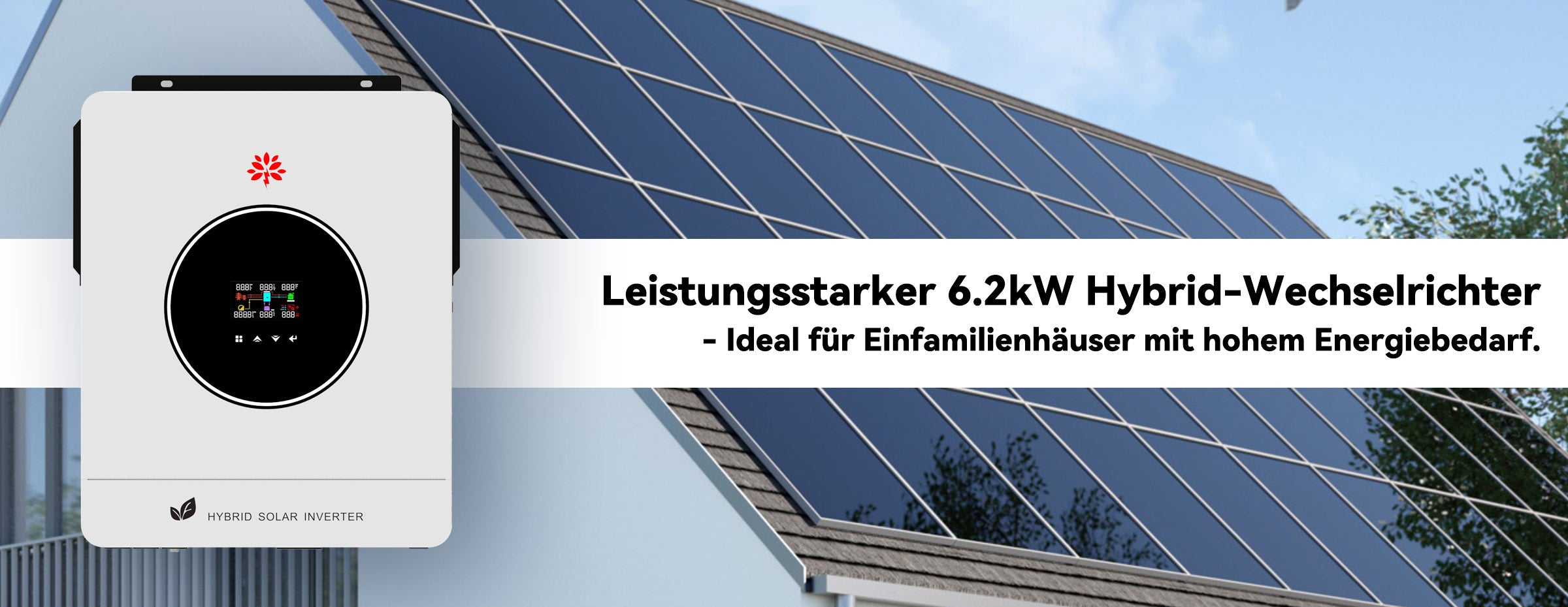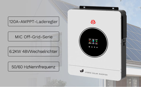 Der Homepow LMS-6200W Hybrid-Wechselrichter ist die perfekte Lösung für private Solaranlagen, die maximale Flexibilität und Sicherheit verlangen. Mit einer Leistung von 6.2 kW, integriertem MPPT-Solarladeregler (120A), WiFi/GPRS-Überwachung und einem modernen OLED-Display mit Touch-Bedienung vereint er höchste Effizienz mit komfortabler Steuerung.Dank Hybrid-Technologie ist sowohl On-Grid (netzgekoppelt) als auch Off-Grid (netzunabhängig) Betrieb möglich – ideal für Eigenverbrauch, Notstromversorgung oder vollständige Autarkie.