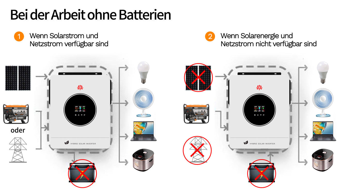 Hybrid-Betrieb: Netz · Batterie · Solar