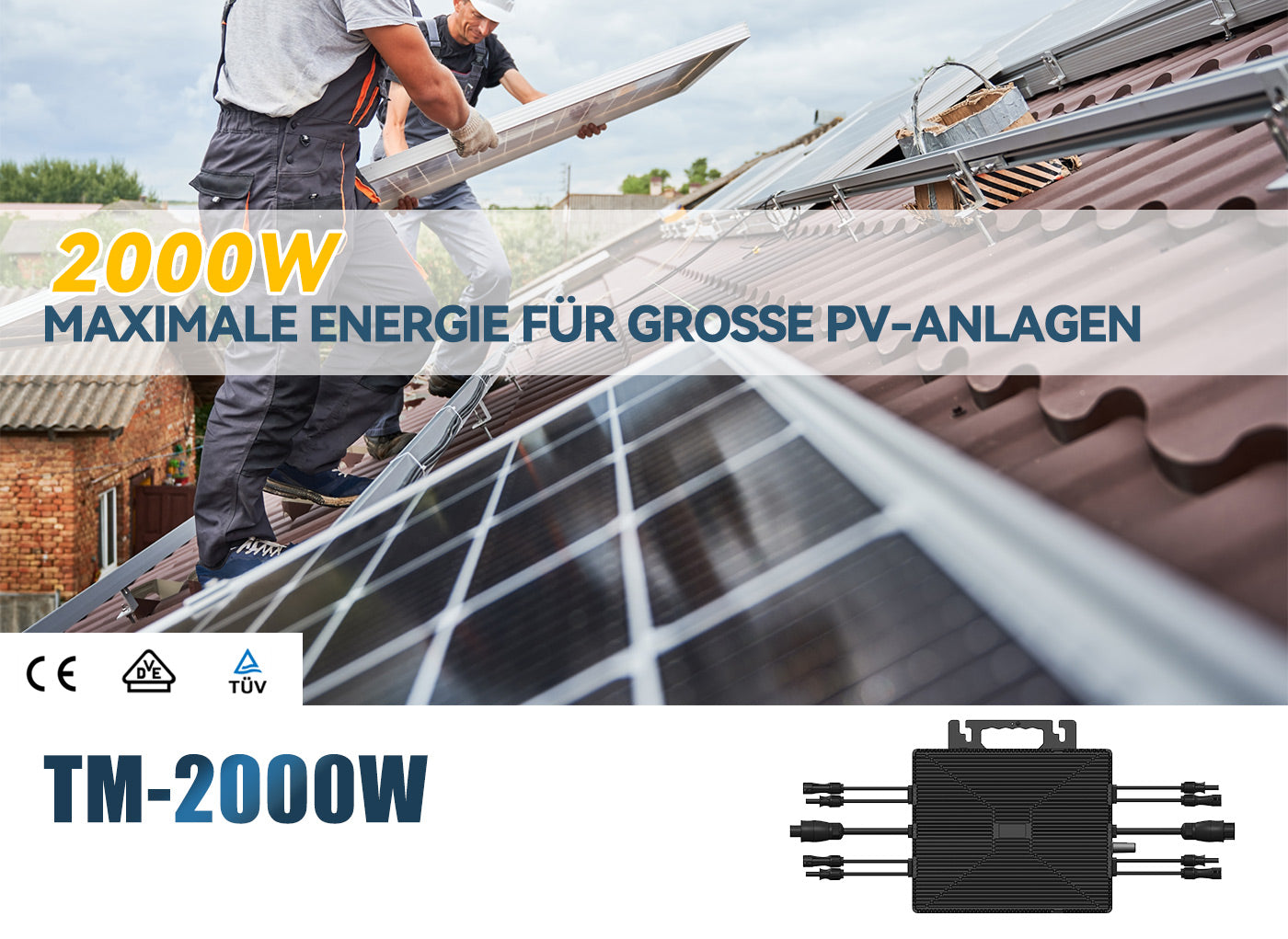 Entfesseln Sie die volle Leistung Ihrer PV-Anlage mit dem Homepow TM-2000W Mikrowechselrichter. Mit einer maximalen Ausgangsleistung von 2000 W und bis zu 96 % Spitzenwirkungsgrad bietet er hohe Energieeffizienz und zuverlässige Stromerzeugung. Ideal für größere Balkonkraftwerke und kompakte PV-Systeme, die stabile Leistung und modernes Monitoring kombinieren.