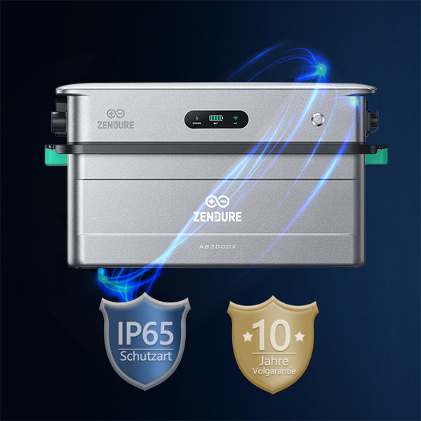 IP65-zertifiziert für Innen- & Außeneinsatz, staub- und spritzwassergeschützt. LiFePO4-Batterie mit tausenden Ladezyklen und 10 Jahren Vollgarantie für maximale Investitionssicherheit.