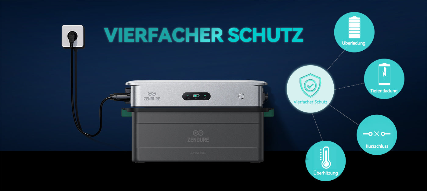 Der ZT-2400AC bietet höchste Sicherheit und langlebigen Betrieb dank integrierter Schutzmechanismen gegen Überladung, Überstrom, Kurzschluss und Überhitzung. Sein robustes, wetterbeständiges Design garantiert Dauerbetrieb, und der sichere Einsatz ist nur in Verbindung mit der Homepow AB3000X Balkonbatterie gewährleistet.