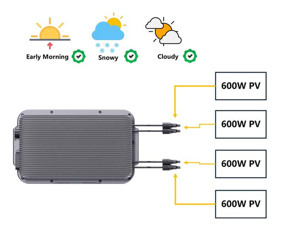 •Capable of connecting to 4*500W solar panels, delivering an annual output of over 2300 kWh.