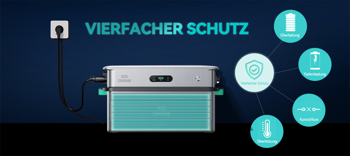 Mit modernster LiFePO4-Technologie bietet der ZT-AB3000X maximale Sicherheit – von Natur aus stabil und zusätzlich geschützt durch intelligente Thermal-Runaway-Prävention sowie einen 4-fachen Schutz vor Überladung, Tiefentladung, Kurzschluss und Überhitzung.